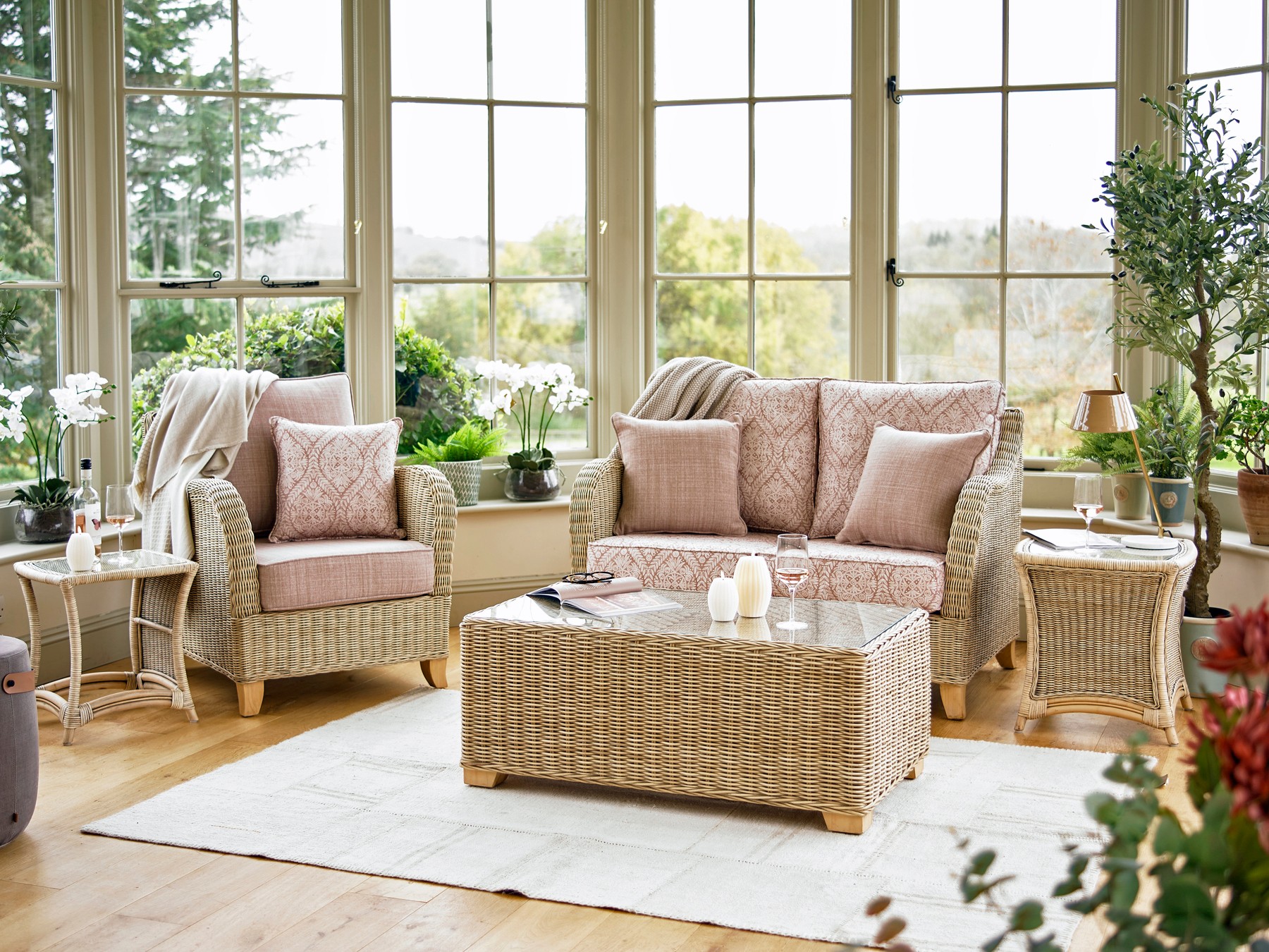 The Knightshayes is a comfortable, modern suite - compact, with good firm back support and softly curved arms. Woven from rattan, the Knightshayes is available in an Almond finish.