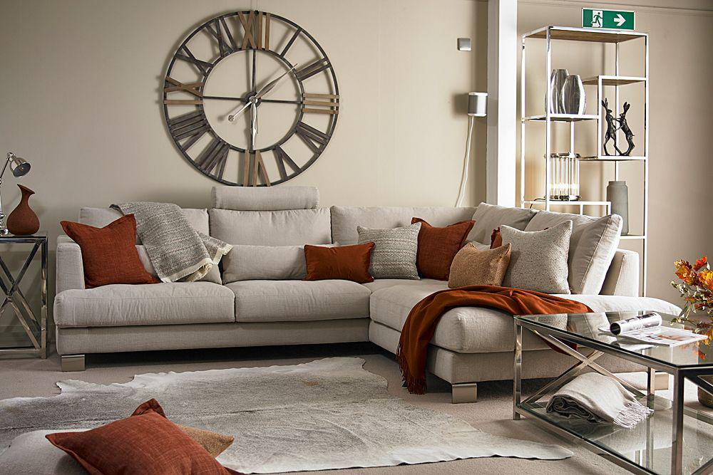 Stylish contemporary living room furniture. Modular sofas, corner sofas and armchairs featuring the best continental designs. Brandon is an ultra-stylish collection of very modern living room furniture - low, sleek and very comfortable. The collection includes armchairs, sofas and footstools and a modular system that allows you to build a wide range of corner groups. The broad seats have a low back to accentuate the dramatic low profile, while high back cushions and a deep seat cushion are feather-wrapped, creating the perfect environment for relaxing and getting together with friends and family. There is a wide choice of fabrics - some shown here. If you would like to see more, including leather options, give us a call.