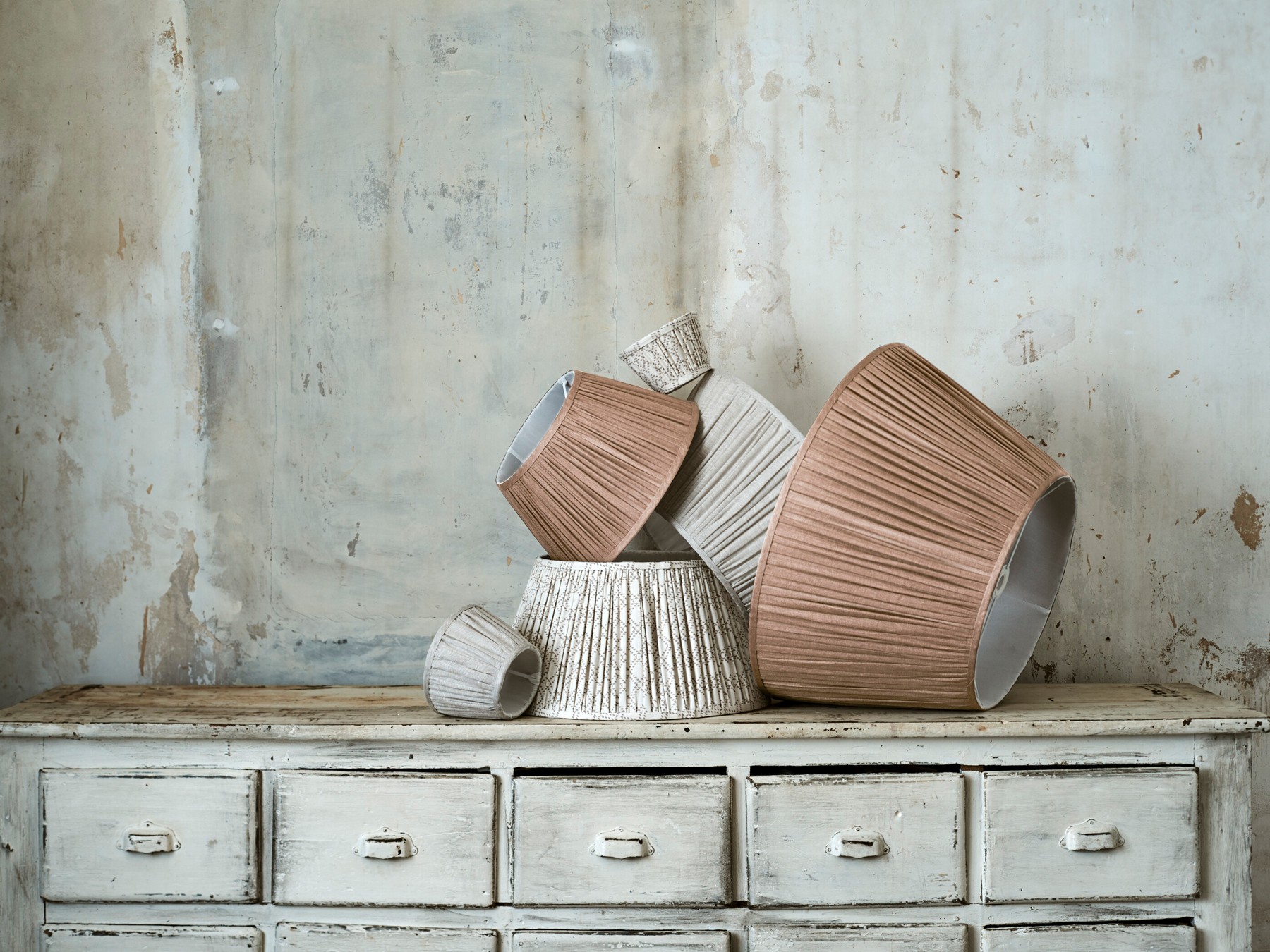 Shop beautiful cotton, linen and hand-woven rattan lampshades for our table lamps, floor lamps and wall lights, from classic empire designs to contemporary shades and decorative statement pieces.