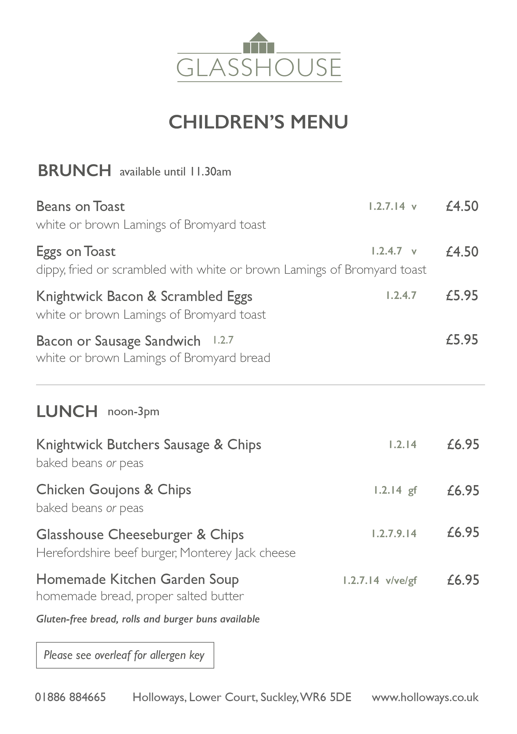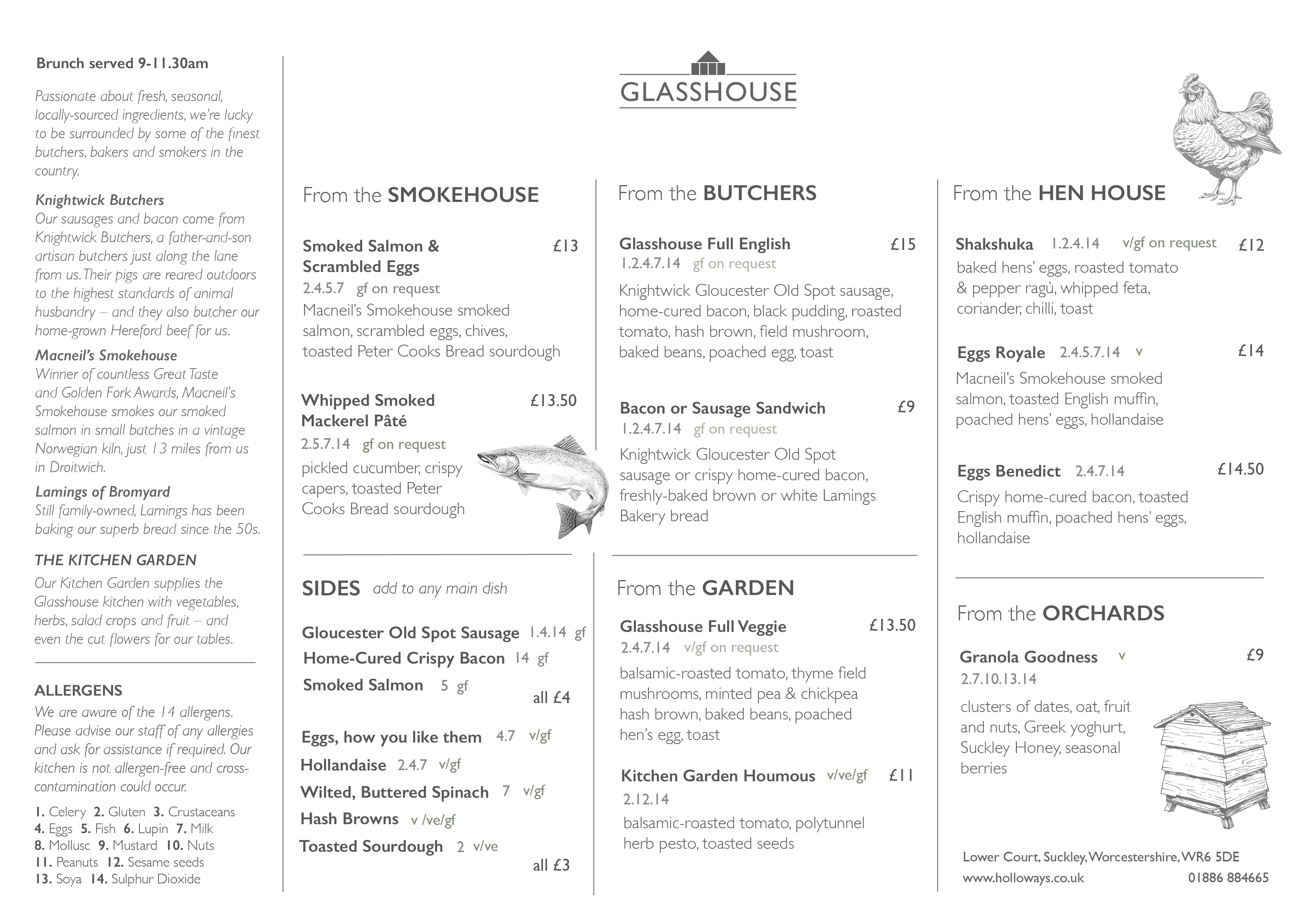 Our lunch menu caters for vegetarians and vegans. Dairy-free? Coeliac? Just let our staff know and we'll do our very best to accommodate you. Our staff are passionate and knowledgeable about the food we serve and we are aware of the 14 allergens. All of our dishes are homemade in our Glasshouse kitchens using fresh, local ingredients. NB: The kitchen is not nut-free.
