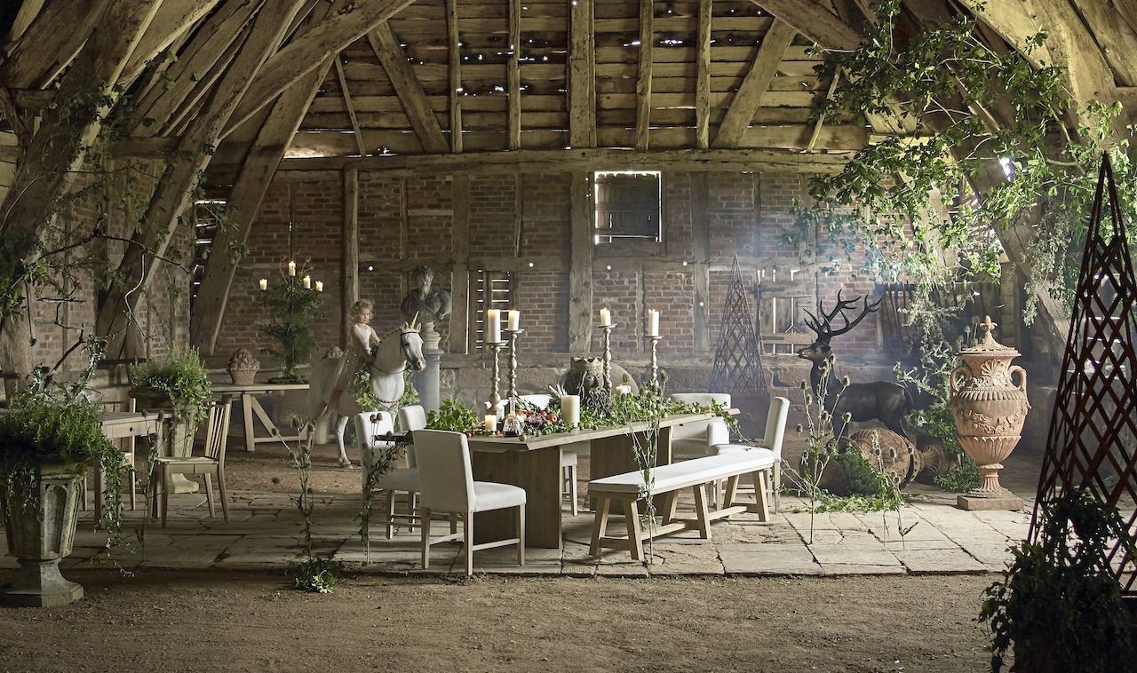 At Holloways, we're always striving to create extraordinary interiors, so it seemed only right to choose an extraordinary location for our photoshoot to showcase our autumn furniture collections. With a truly brilliant team, including the wonderful florist Shane Connolly from Shane Connolly & Co, stunning Holloways furniture and a collection of (mostly) impeccably-behaved animals, we transformed the cathedral-like interior of the 14th century Leigh Court Tithe Barn into an enchanting wonderland. Look out for our images in the glossy interiors magazines this autumn. But in the meantime, here's the story of a very special shoot…