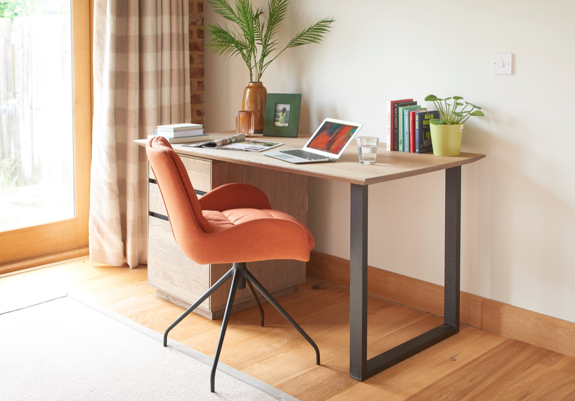 The fabulous Ribble Swivel chair is available in wool or leather in a choice of vibrant colours from orange to pistachio and turquoise. It’s elegant, stylish and supremely comfortable with slender legs in anthracite grey. There’s also a matching Ribble desk with two roomy drawers and a filing draw beneath for all the home office storage you need. It also looks great with the compact Derwent desk, pictured below - ideal for smaller spaces or city living.