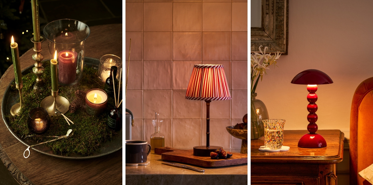 Warm lighting is essential for achieving that cosy country feel at Christmas. Mix twinkling lights, pillar candles, lanterns, and LED micro-lights to create pockets of gentle glow throughout your home. There are traditional and LED candles in almost every colour and size in our Gift Shop, plus decorative string lights and LED lamps.