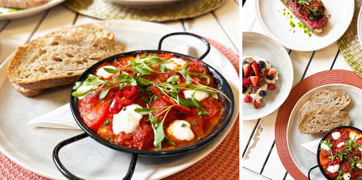 Granola Goodness is new to the brunch menu this month: irresistible clusters of dates, oat, fruit and nuts crumbled over Greek yoghurt, seasonal berries and drizzled with Suckley honey. While Shakshuka is a morning pick-me-up of baked hens' eggs in a rich, roasted tomato and pepper ragù finished with whipped feta, coriander and chilli and served with Lamings of Bromyard toast.