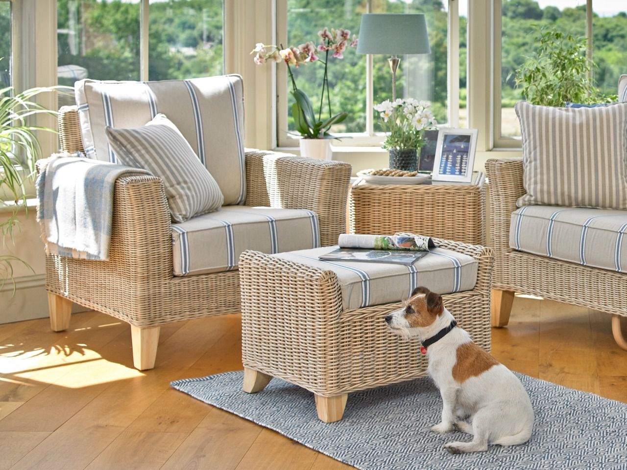 Every county home has a woven rattan chair. Nothing adds contemporary county living style like it. A comfy woven chair and footstool, in a garden room full of plants, cushions and throws, with a dog to walk and a good book to read. Relax and live the county life wherever you are.