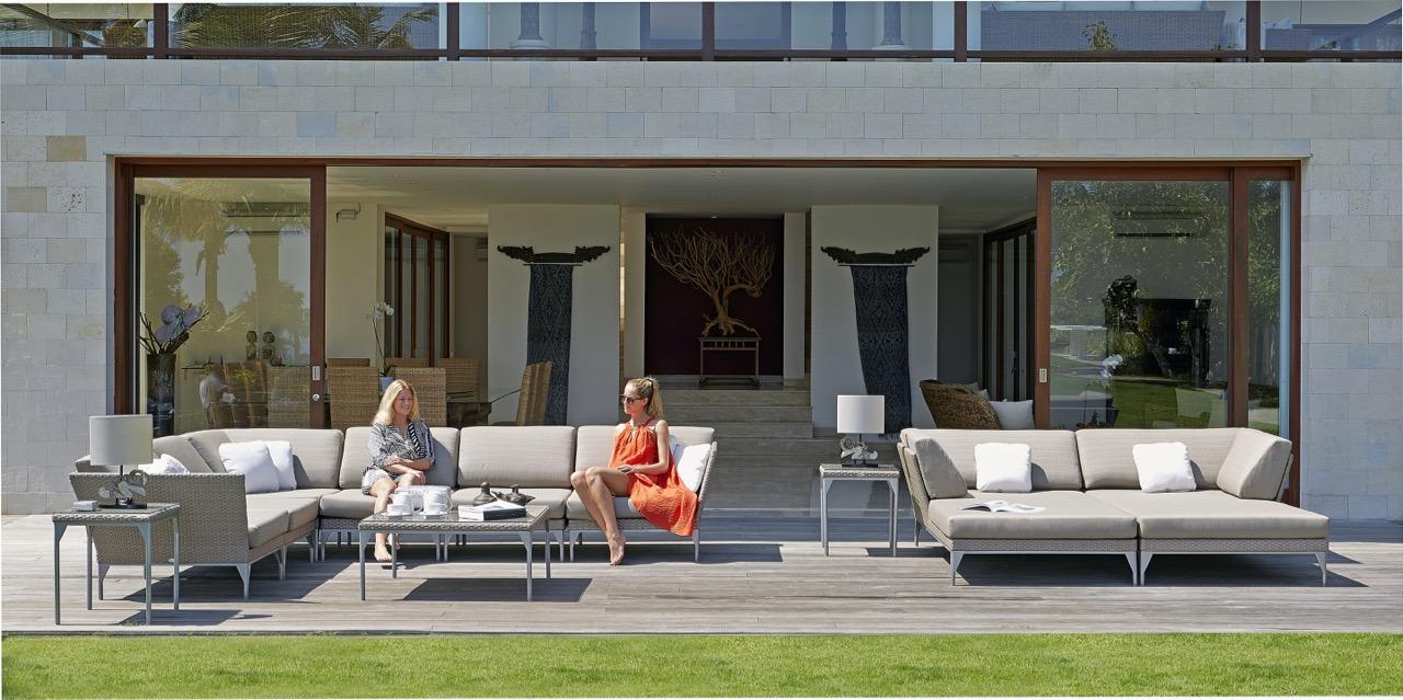 The Strips collection is a dramatic new range of contemporary outdoor sofas, armchairs and occasional tables that would look stunning on any large terrace with a view of the sea, the patio outside your bi-fold doors, or by your poolside. Strips combines bold architectural shapes and the texture of a large outdoor rattan weave with spacious designs and extreme comfort. Once again the cushions are covered in outdoor fabric with a choice of colours.